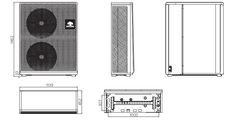 Die verbesserte Wärmepumpe der BeeSmart-Serie im Split-Design mit einer Heizleistung von 9,2 / 11,6 / 15,3 / 18,5 kW (A7/W35) für Heizung, Kühlung und Warmwasserbereitung.