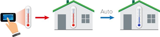 BeeSmart-Geräte verfügen über eine automatische Heiz-/Kühlumschaltfunktion, um dem Benutzer einen wirklich unbeaufsichtigten automatischen Betrieb des Systems zu ermöglichen. Benutzer können diesen Modus so einstellen, dass er auf der Grundlage der Umgebungstemperatur, der Raumtemperatur oder eines Signaleingangs von anderen externen Geräten funktioniert.