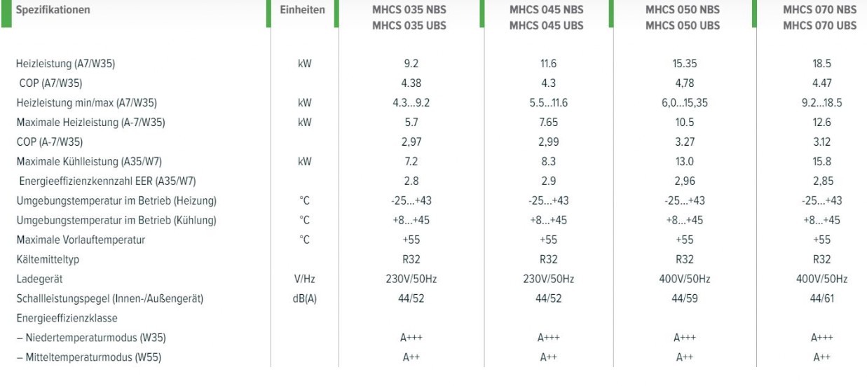 - Heizleistung 9,2 / 11,6 / 15,3 / 18,5kW (A7/W35)