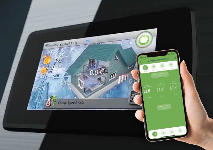 Der Wärmepumpenregler mit Touchscreen sorgt für einen wetterabhängigen Heiz-/Kühlbetrieb der Gesamtanlage auf Basis der Außenlufttemperatur, eine komfortable Warmwasserbereitung sowie die Steuerung einer Zusatzwärmequelle. Durch die Unterstützung der Fernbedienung über das Smartphone ist das gesamte System äußerst einfach und komfortabel zu bedienen.