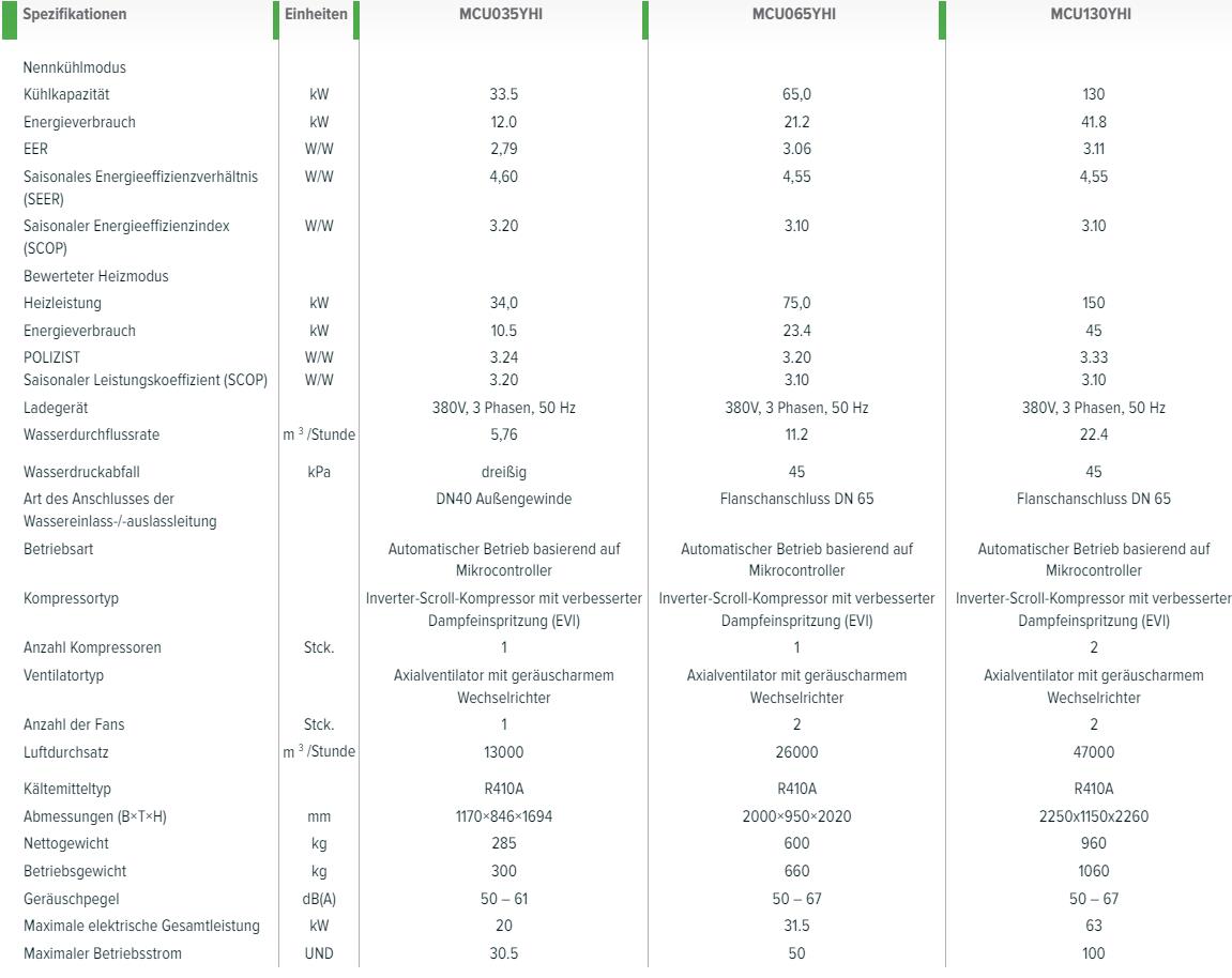 Die technologisch fortschrittliche MCU YHI-Wärmepumpenserie basiert auf der neusten Technologien. Das Herzstück des Geräts ist ein Inverter-Kompressor mit EVI-Technologie.